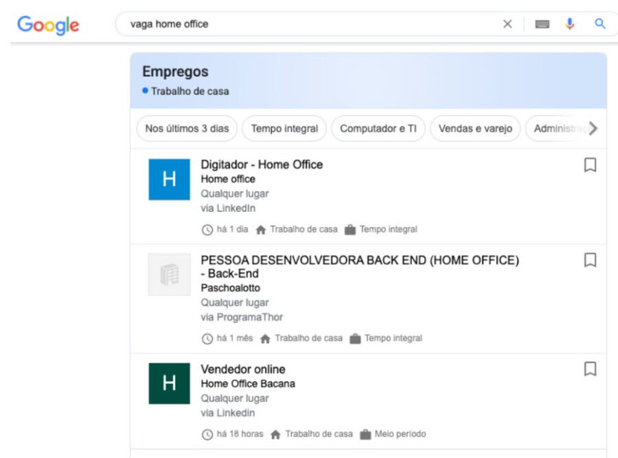 Google lança ferramenta para ajudar a encontrar empregos home office